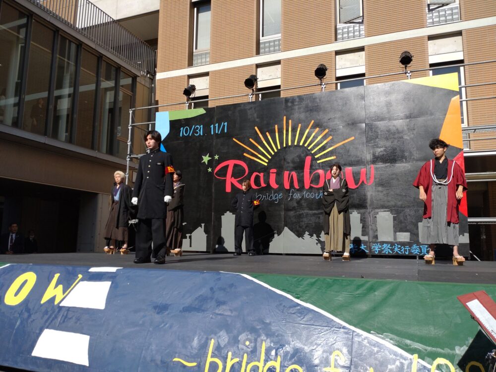 先日、本学では大学祭がありまして、私も大学祭に行きました。大学祭では部活動やサークル、学生団体による模擬店やステージでの発表など色々な企画があり、非常にどれも興味深いものでした。私が特に楽しみにしていたのは名城大学應援團リーダー部によるリーダー公開です。大学祭でリーダー公開が行われるのは実に10年ぶりで名城大学学歌、第二応援歌「真澄の空に」をはじめ、第一応援歌、カレッヂソング「暁の東海」などが披露されました。リーダー部の力強く、迫力のある演舞に心が打たれました。リーダー部の学ランや袴姿がとてもかっこよかったです。